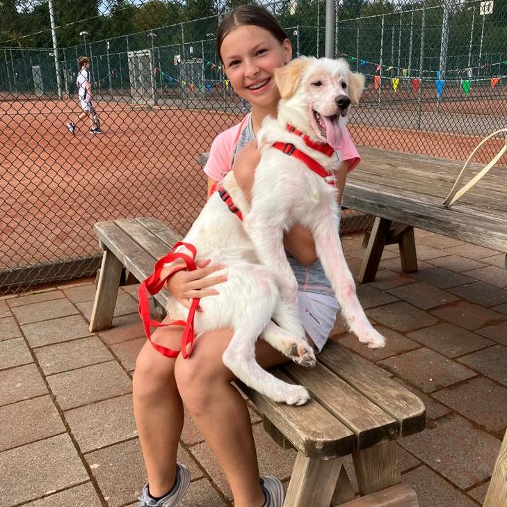 Fleur heeft een aantal keer mijn hond voor me uitgelaten en dat ging super! Fijn contact, blije hond :)