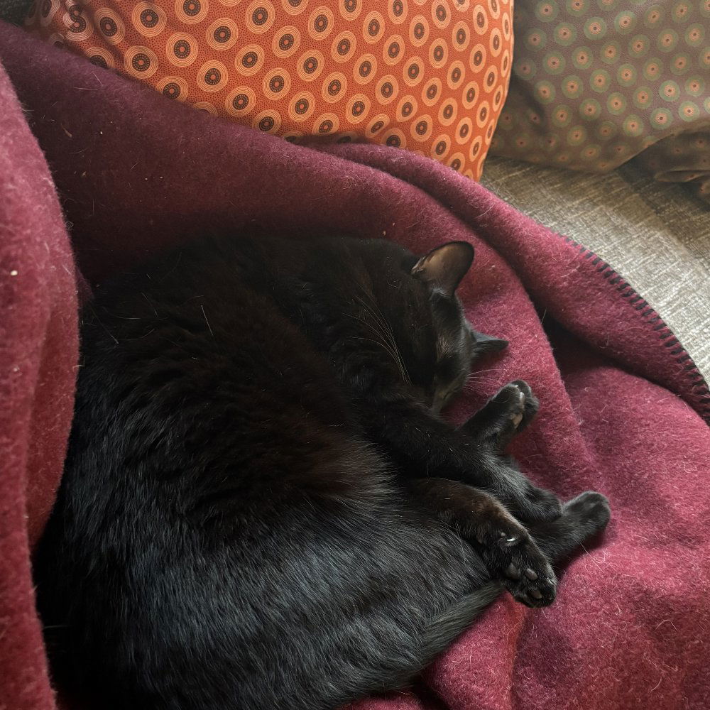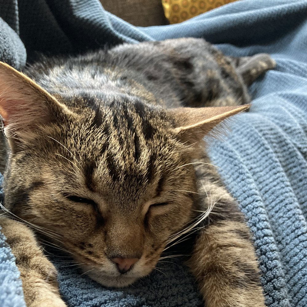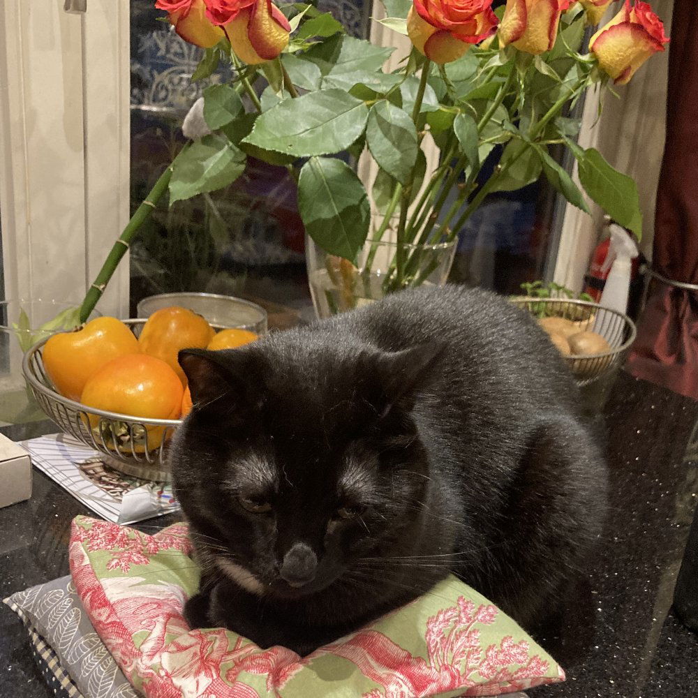 Nelson is super sweet and basically detects any lap available no matter where in the house he is. He has no teeth as he had bad gum disease and needed to have them removed. We adopted him from the street in Botswana and he is not a fan of the cold.