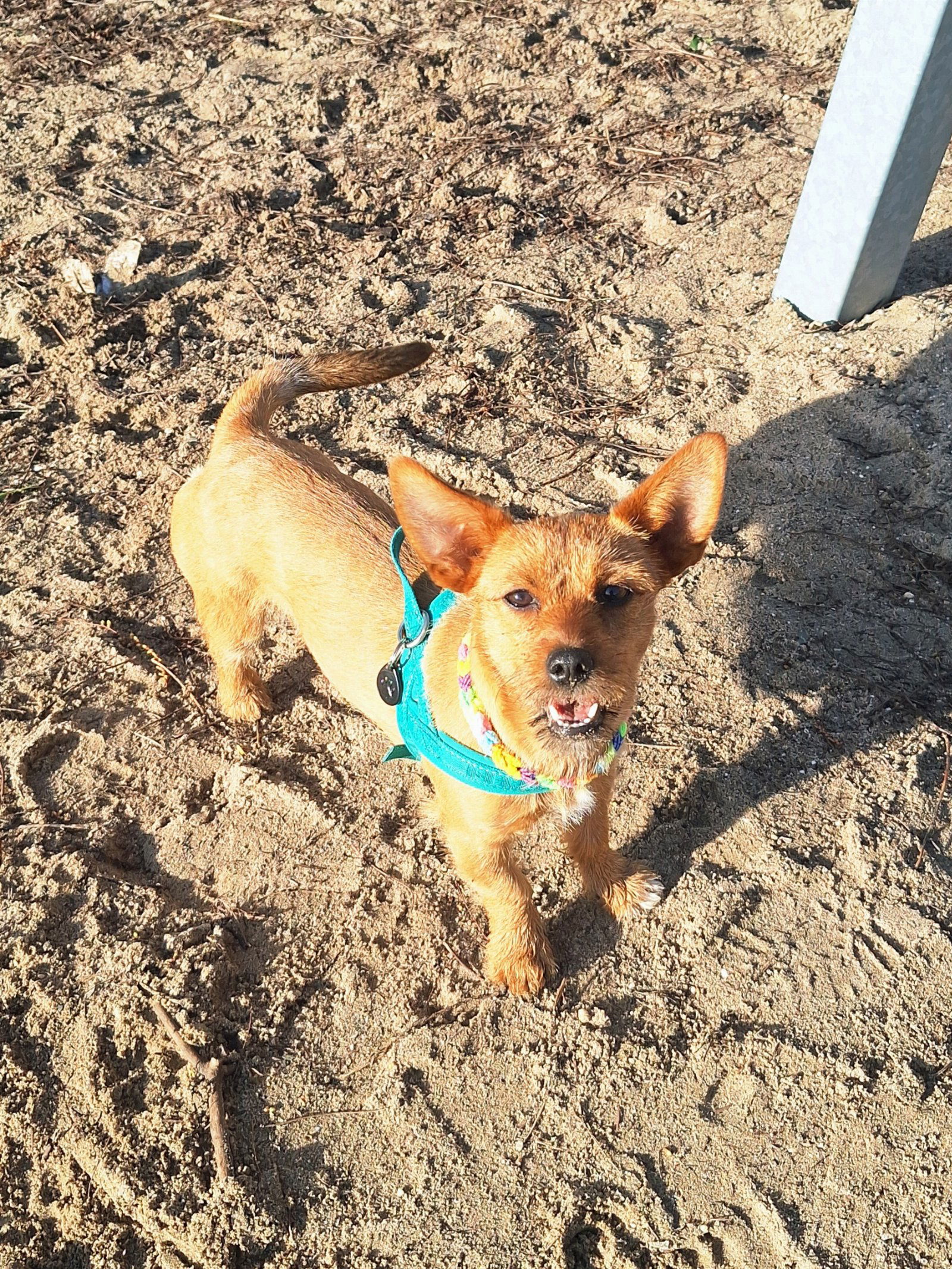 Elli is een 30 cm kleine bruine kruising van voornamelijk Portugese Podengo met grote oren, en is net 1 jaar geworden. Ze is bijzonder zachtaardig van karakter en kan met alle honden samen, heerlijk wandelen zonder zorgen of het wel goed gaat. Ze is gezellig en speels, pakt ook haar rust en slaapt goed. 's-nachts ligt ze (nog) in de bench, overdag is ze regelmatig alleen (met de poes), los in de woonkamer. Dat gaat prima.