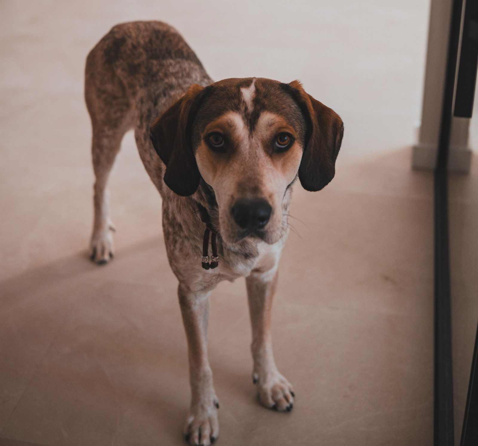 Bodhi is een lieve jachthond van 30 kilo. Hij is thuis zeer rustig en buiten op pad actief en druk met snuffelen (jachthond).
