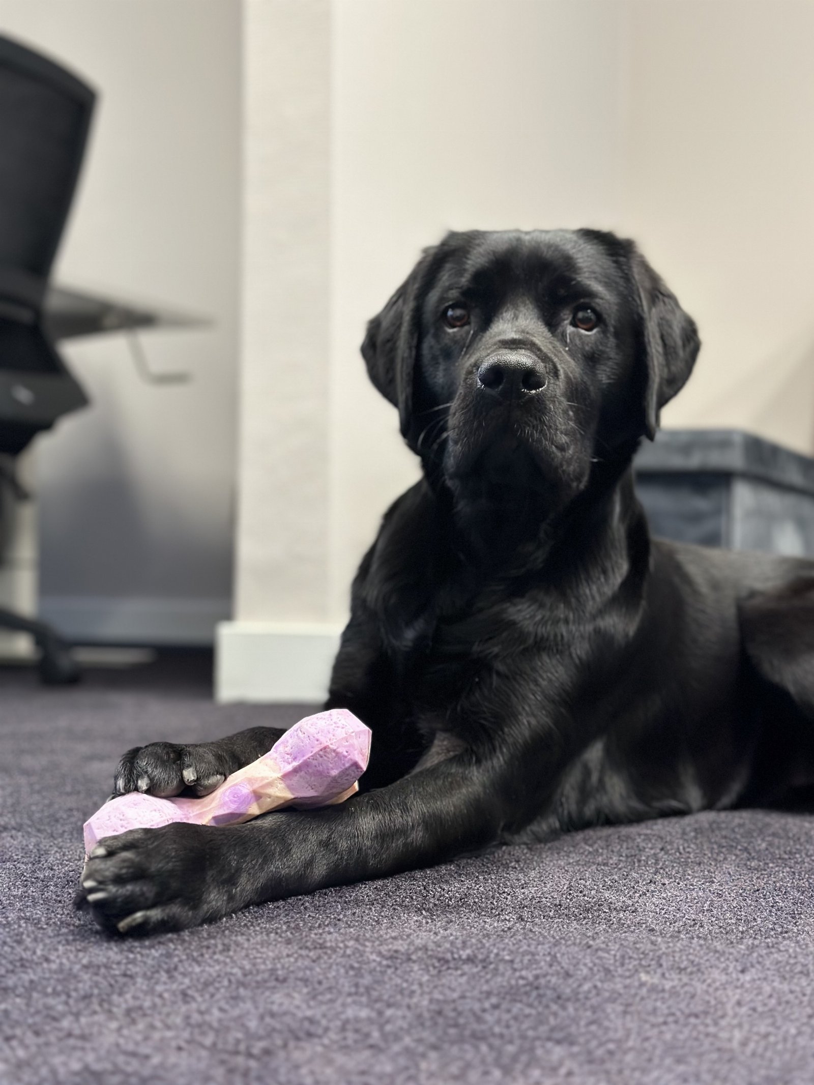 Lieve, rustige labrador. Makkelijk in de omgang. Is enig huisdier in huis, maar heeft vaker gelogeerd bij andere honden en bij katten. Gaat altijd prima.