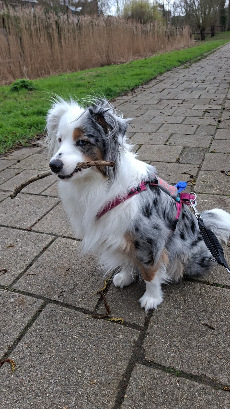 Of als er een losse tak ligt pakken we die en is ze ook gauw afgeleid want takken vindt ze geweldig.