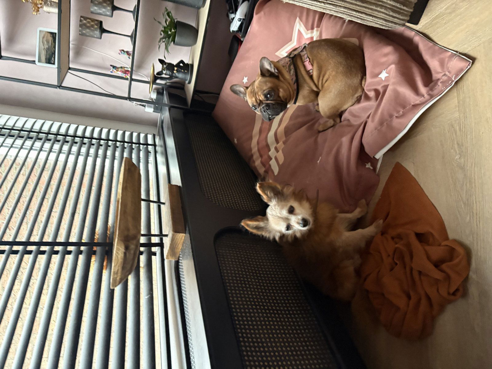 bandit is een lieverd komt altijd kroelen.! alleen vind alle hondjes die hij tegen komt met uitlaten altijd interessant en laat zichzelf dan ook echt horen. Verder slaapt hij in zān bench maar ook als je even de kamer uit komt kun je hem het beste vast doen anders kan hij zān sporen nalaten.!