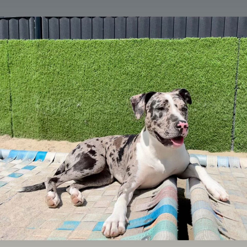 Rox Amerikaanse stafford van dan 1,5 jaar (26KG), is een echte grote blije knuffelkont, ze is een puber en speels en gaat goed in haar bench als je dat vraagt.